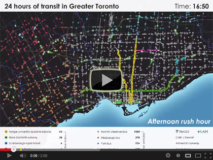 - This video shows the movement of buses, streetcars, subways, and commuter trains in the Greater Toronto area
